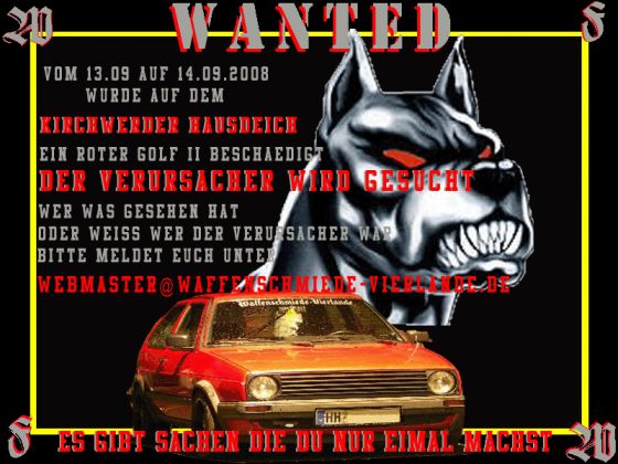 Aber wenn schon mal bekannt ist das es ein roter Golf war dürfte sich der Täter ja wohl finden lassen, da liegt die Vermutung nahe das es Jemand aus der Gegend war...........